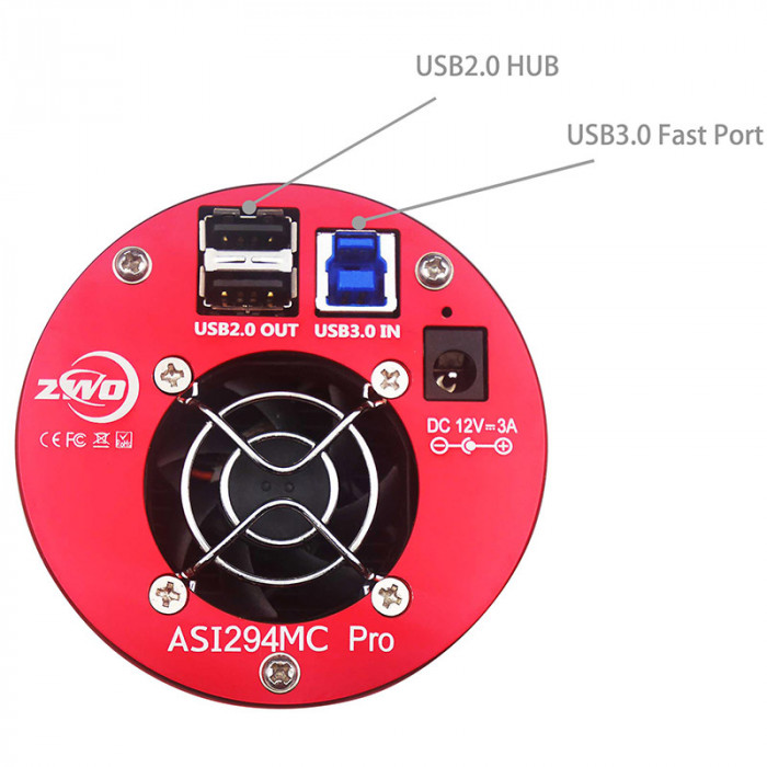 Equipadas con un puerto USB 3.0, las cámaras refrigeradas ZWO permiten obtener imágenes planetarias a muy alta velocidad. En la versión "Pro", esta cámara cuenta con una memoria intermedia de 256 MB, lo que aumenta significativamente la velocidad de lectura del sensor.