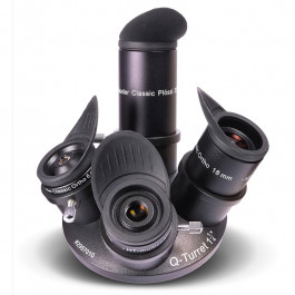 La nueva torreta portaoculares revolver de Baader Planetarium equipada con toda la gama de oculares ortoscópicos y el ocular Plössl de 32 mm te permite una amplia gama de aumentos sin tener que desmontarlos del portaocular.