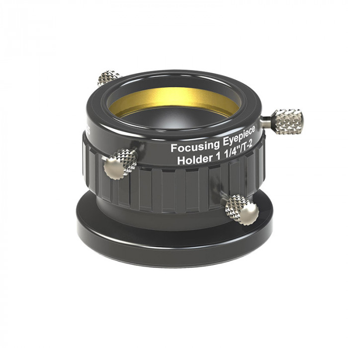 Se usa en salidas tipo T2 para sujetar todo tipo de accesorios de 31,7 mm, por ejemplo, para poder poner cámaras CCD de planetaria en sistemas de proyección de ocular, o colocar este mismo tipo de cámaras en oculares Hyperion, junto al adaptador T2 / M43 que se vende como accesorio para estos oculares. Este portaocular tiene la posibilidad de enfocar el ocular con un desplazamiento de hasta 6 mm.