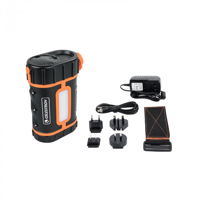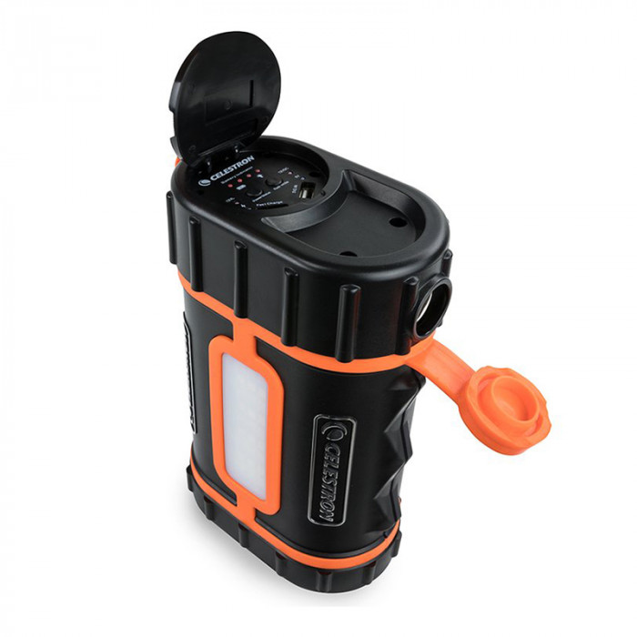 El nuevo PowerTank PRO de Lithium (litio) de Celestron es portátil y utiliza la nueva tecnología química del fosfato de litio-hierro (LiFePO4) que mejora con creces el rendimiento en comparación con otras baterías. Tiene un diseño moderno y muy atractivo, compacto, funcional, extraordinariamente ligero y robusto, que hacen que esta fuente de alimentación se perfecta para usar al aire libre, la versión PRO ofrece el doble de la capacidad de la PowerTank original.
