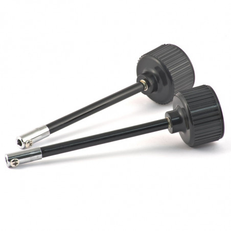 Conjunto de 2 mandos Sky-Watcher de movimientos lentos flexibles para las monturas EQ-3. La longitud de uno de los mandos es de 19 cm (14,5 cm excluyendo la rueda) y el segundo mando tiene una longitud de 12,5 cm (8 cm excluyendo la rueda).