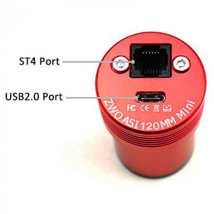 En su constante esfuerzo por satisfacer las necesidades de los astrofotógrafos, ZWO (Zhen Wang Optical) ofrece cámaras en miniatura para autoguiado en su serie "Mini". La cámara guía ASI120MM Mini incorpora el mismo sensor AR130CS de 1,2 megapíxeles (1280 x 960 píxeles) con píxeles de 3,75 µm que la cámara ASI120MM. La transferencia de datos se realiza mediante USB 2.0 en la versión Mini y USB 3.0 en la versión estándar; por lo tanto, la velocidad máxima de disparo es menor.