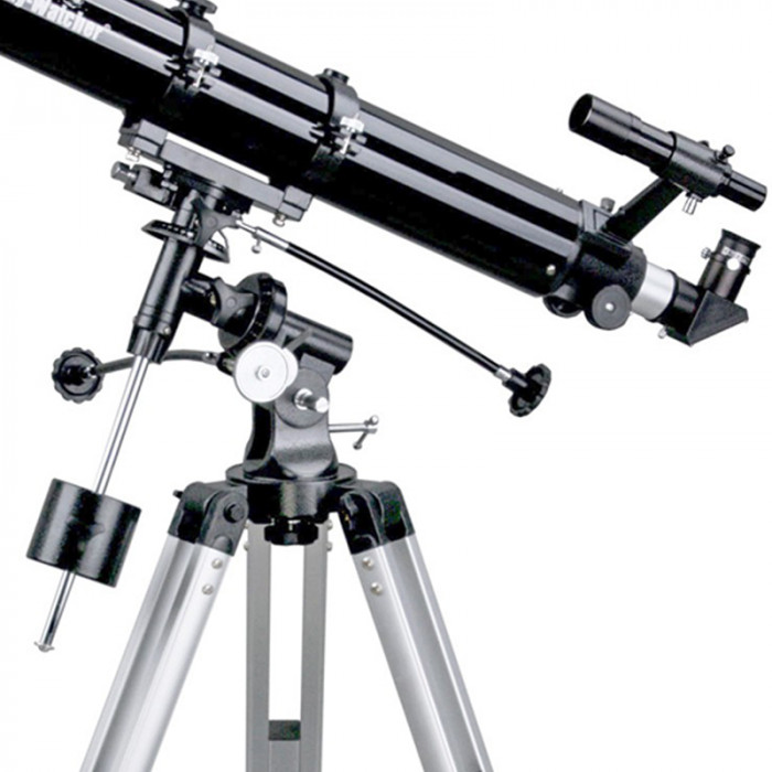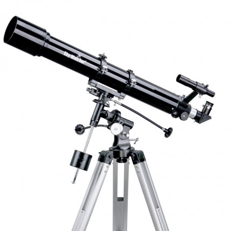 El telescopio refractor Sky-Watcher 90/900, está dotado de un objetivo acromático. La combinación de dos lentes corrige la mayoría de los errores cromáticos. Durante la observación no se presentan tantas franjas cromáticas pertubadoras como en telescopios más corrientes. En general, se trata de un instrumento ideal para que principiantes emprendan sus primeras observaciones astronómicas por el Universo.
