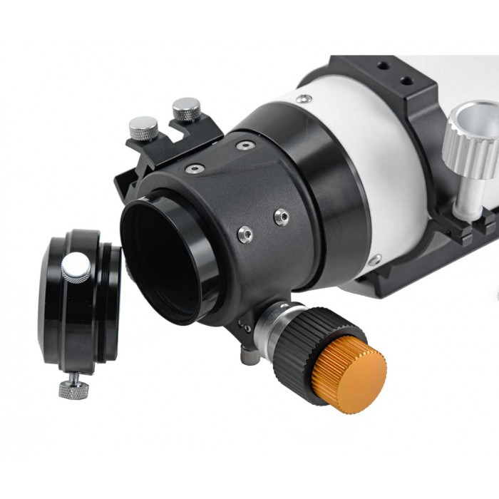 El tubo óptico se suministra con anillas metálicas mecanizadas por CNC para tener una fuerte fijación a la montura. Dispone de parasol retráctil con una longitud (con parasol recogido) de 505 mm y el diámetro del parasol es de 125 mm.