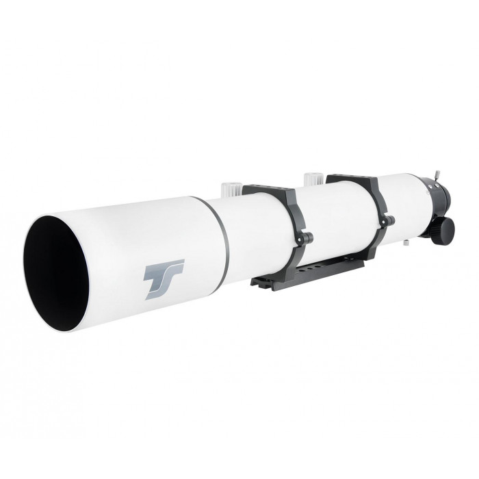 El tubo óptico se suministra con anillas metálicas mecanizadas por CNC para tener una fuerte fijación a la montura. Dispone de parasol retráctil con una longitud de transporte de 615 mm.