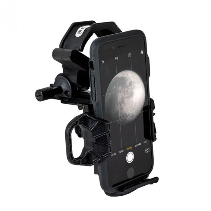 El adaptador universal Celestron con plataforma NexYZ le permiten obtener fotografías usando su teléfono y telescopio, está diseñado en 3 ejes que se adaptan a cualquier ocular entre 30 mm y 60 mm de diámetro, incluidos los telescopios con oculares de 1,25" y 2", telescopios, monoculares y binoculares. Con el anillo adaptador que viene incluido, también podrá usarlo en microscopios que tienen oculares de hasta 25 milímetros de diámetro. La plataforma NexYZ es totalmente ajustable, lo que le permite adaptarse a una gran variedad de teléfonos.