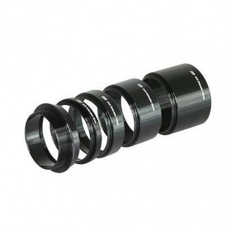 El extensor T2 tiene una rosca macho T en un lado y una rosca hembra T en el otro. Estas anillas de extensión T2 ayudan a alcanzar una distancia predeterminada para poder usar nuestra cámara con el enfoque correcto.
