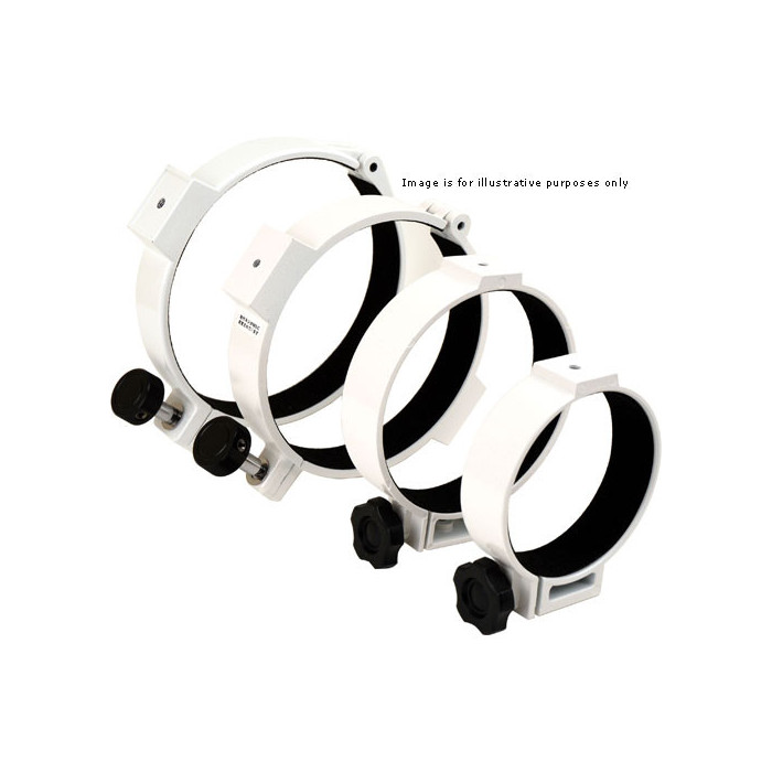 Estas abrazaderas están diseñadas para tubos de 115 mm, aunque son compatibles con A105M de Vixen, ED103S y AX103S.