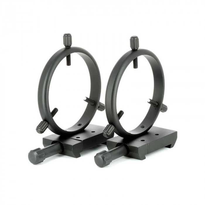 Anillas Kepler para tubos guías con diámetros de hasta 102 mm (diámetro físico del tubo óptico). Estas anillas están fabricadas de metal y tienen 3 tornillos con punta de plástico para evitar arañazos en los tubos, con base hembra tipo Losmandy (3").