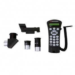 Puede ser alimentado con 8 pilas AA, con transformador AC, con una fuente de alimentación tipo "Powertank" o con tizo de coche. Con el mando de control manual de diseño ergonómico, el usuario tiene la libertad de quitarlo de su soporte o dejarlo colgado para su manejo. Con un toque de botón puede seleccionar el catálogo de objetos, cambiar la velocidad de giro, ver información fascinante sobre un objeto o sencillamente saber si un objeto es visible en el cielo.