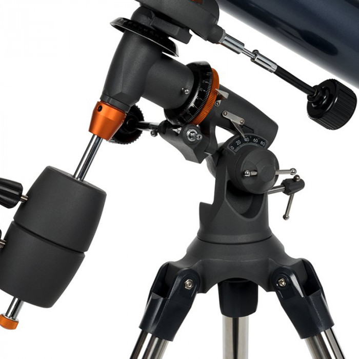 - Montura ecuatorial alemana con círculos de posición que permite una localización y seguimiento de gran precisión de los objetos celestes (modelos AstroMaster 70EQ, 90EQ, 114EQ y 130EQ).