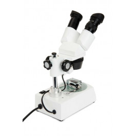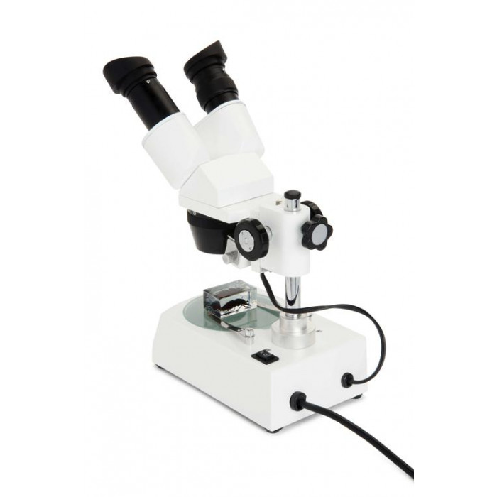 El microscopio Celestron estereoscópico de la serie LABS S10-60 construido en base metálica, nos ofrece desde los 10x aumentos hasta los 60x aumentos, gracias a la combinación de sus objetivos 3x y sus oculares 20x. Es muy adecuado para la visualización de detalles sobre los objetos 3D tales como hojas, insectos, rocas, minerales...