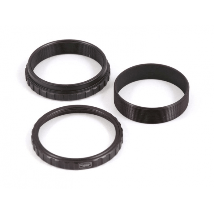 Adaptador T2 de Baader Planetarium con rosca macho/hembra variable de 12 a 16 mm con bloqueo de posición. Con este sistema, podemos ajustar la posición de, por ejemplo, el back focus de una cámara CCD entre las medidas especificadas. Parte nº 33 del sistema T2. Este sistema consta de 3 partes, la nº 26, la nº 34 y la nº 35 del sistema Astro T2.