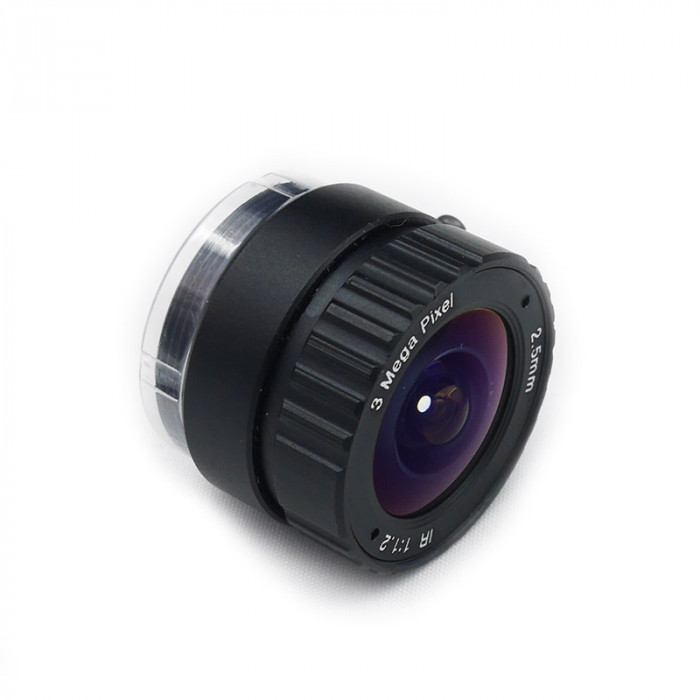 Lente de ojo de pez ZWO, distancia focal de 2.5 mm, para una cámara equipada con un sensor de 1/2". Campo de 170°. Compatible con las cámaras ASI178MM, ASI178MC y ASI185MC.