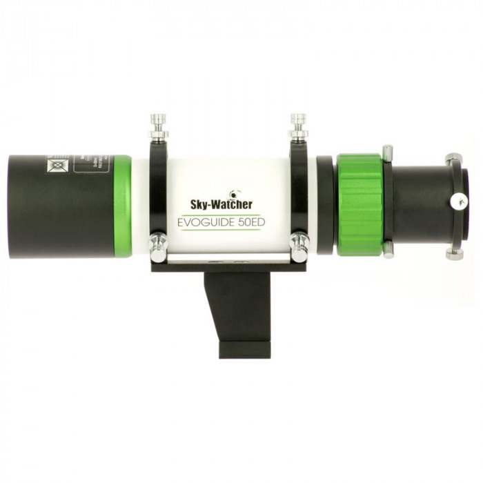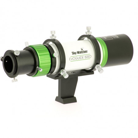 El Evoguide ED50 está equipado con anillas de guiado para permitir el posicionamiento y la búsqueda de la estrella guía, cada uno con 3 tornillos de ajuste con punta de nylon. Se adapta al telescopio como un buscador, ya que la base de las anillas es de tipo estándar de buscador tipo Synta, Orion, Vixen, etc. Permite el uso en guiado para todo tipo de instrumentos de hasta aproximadamente 1000 mm de distancia focal.