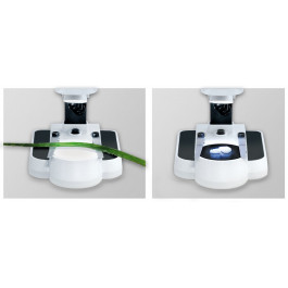 Alimentación con pilas 2x AA, no incluidas (para su colocación hay que extraer 6 tornillos). Trae cubierta plástica antipolvo y una placa de objeto (una cara blanca/otra negra).