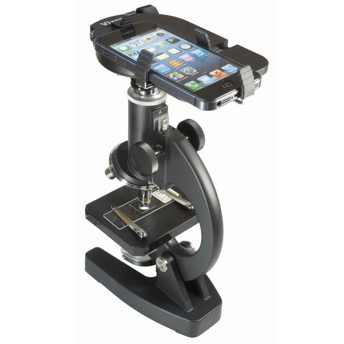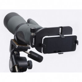 Dispone de manguitos de presión suplementarios, el adaptador funcionará con teléfonos con un tamaño de 19 mm a 43 mm (entre 0,75" y 1,69") de diámetro. Las posiciones de pinza del ocular sostienen un ocular simultáneamente simplemente girando la perilla de sujeción del ocular. Los brazos de sujeción verticales y horizontales con pinza de goma sostienen el teléfono de forma segura y le permiten ajustar la lente de la cámara en línea con el centro del campo de visión del ocular.