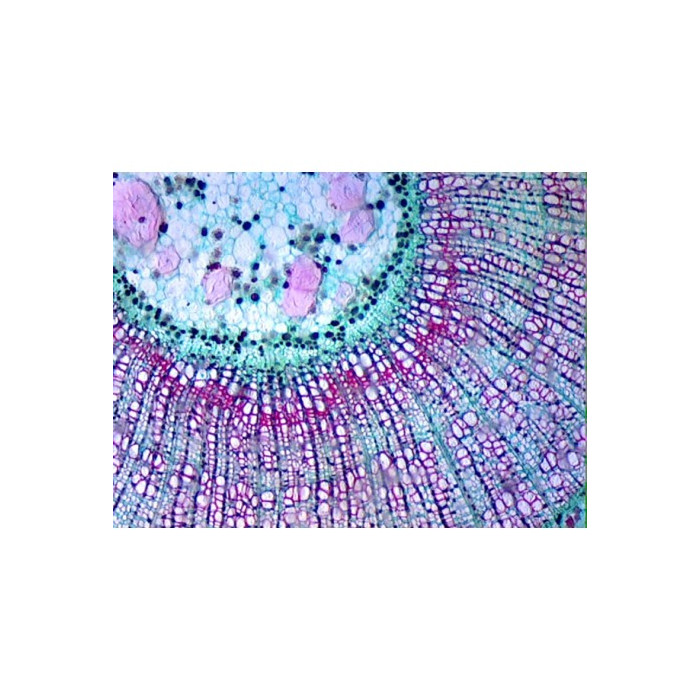 En las imágenes del producto, se muestran imágenes de algunas de las muestras: corte de tilo, músculo cardíaco, Hydra, Neuronas motoras, músculo, médula espinal, intestino delgado, corte de maíz. El tamaño de las muestras son de 25 mm x 76 mm.