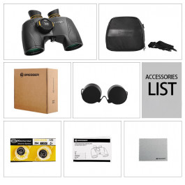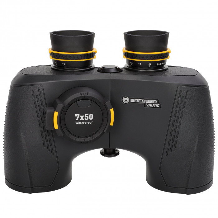 Prismáticos marinos de alta calidad Bresser Nautic para navegantes y entusiastas de los deportes acuáticos. Resistentes al agua y la niebla, rellenos de nitrógeno para evitar el empañamiento de las lentes.