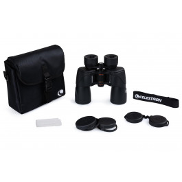 Prismáticos Celestron SkyMaster PRO ED 7X50 con lentes ED de baja dispersión que incorporan revestimiento multicapa Celestron XLT y revestimiento de fase, cuerpo rígido y duradero completamente impermeable y relleno de nitrógeno, blindado de goma (estándar de impermeabilidad IPX7). Posibilidad de conexión a trípode.