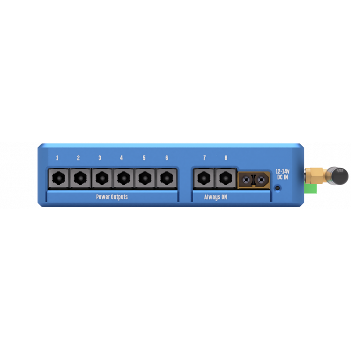 - 6 salidas de 12V inteligentes con interruptor individual para cada una de ellas (se pueden conectar y desconectar mediante software). Además se pueden configurar como un puerto de salida constante de 12V o de pulso modulado.