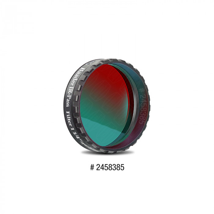 Filtro Baader Planetarium de paso de infrarrojo de 1.25". Este filtro deja paso el infrarrojo a partir de 685 nm para fotografía planetaria en este tipo de paso de banda. Va montado en un barrilete de perfil bajo de 31,7 mm con roscas en ambos lados de M28,5 mm.